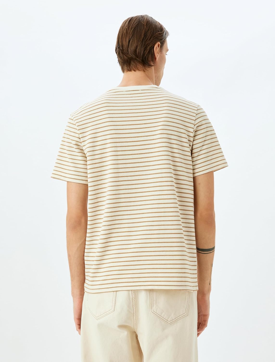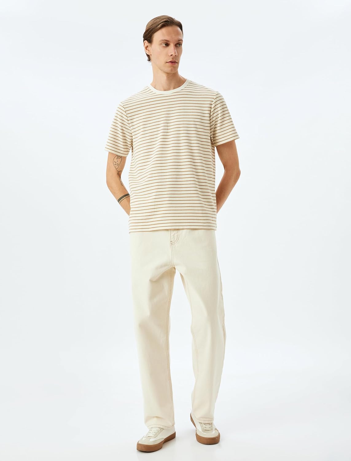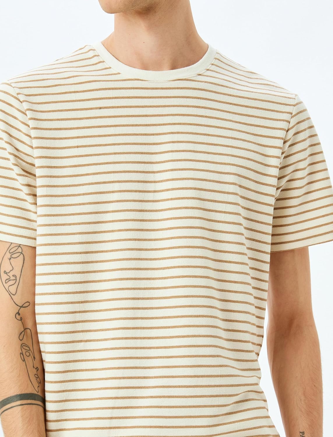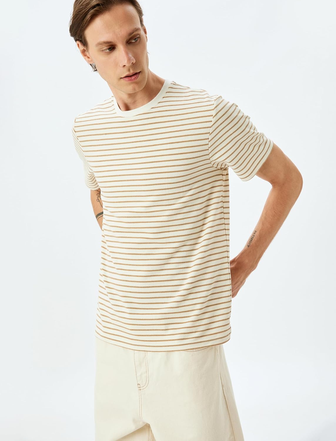 تي شيرت مخطط كبير الحجم برقبة دائرية ضيقة وأكمام قصيرة من مزيج القطن.