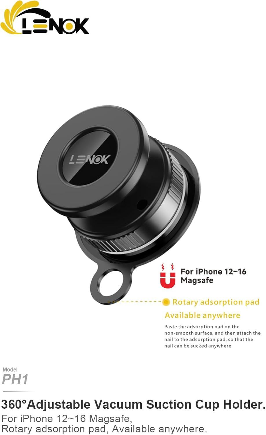 لينوك حامل موبايل مغناطيسي قابل للتعديل بزاوية 360 درجة مع كوب شفط قابل للتعديل بدون استخدام اليدين للسيارة وصالة الالعاب الرياضية والمرآة وسطح أملس، متوافق مع ايفون واندرويد وجميع الهواتف الذكية.