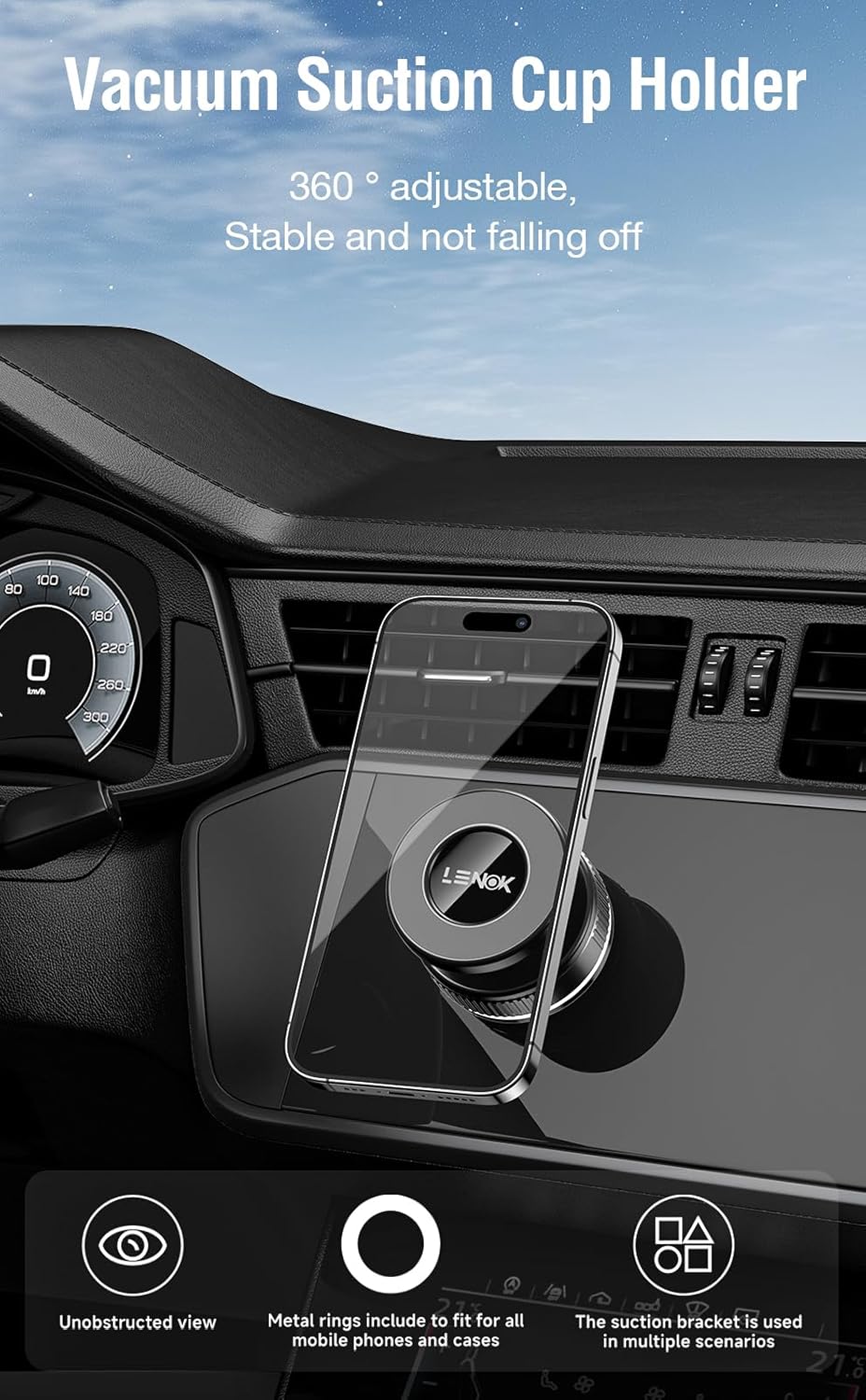 【تثبيت مغناطيسي قوي، صديق للإشارة، ومتوافق مع الحافظة】: لا يتداخل حامل الشفط المغناطيسي مع إشارات الهاتف أو الشحن، مما يجعله مثاليًا للتنقل والشحن أثناء التنقل. تحمل قوتها المغناطيسية الهواتف الأكبر بشكل آمن، وتعمل مع معظم حافظات الهواتف التي لا يزيد سمكها عن 5 ملم (0.02 انش)، على الرغم من أنه يجب إزالة بطاقات الائتمان المخزنة في الجرابات. يقدر العملاء تصميمه الأنيق وبنيته القوية وسهولة التركيب، مما يجعله عمليًا للرحلات الطويلة والقصيرة.