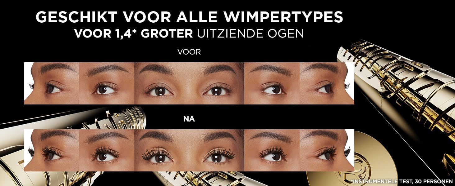 ماسكارا بانوراما فوليوم مليون لاشز من لوريال باريس – رموش كثيفة – تقاوم التكتل والتلطيخ والتقشير، مناسبة للعيون الحساسة، أسود