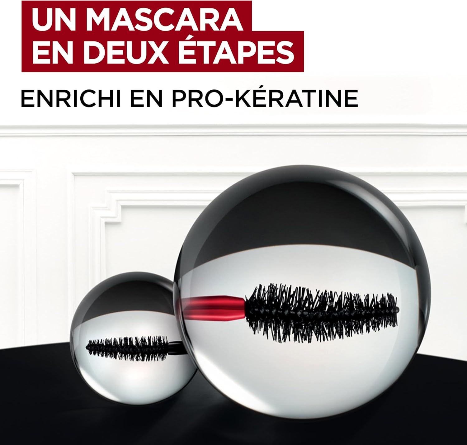محتويات العبوة: 1 × ماسكارا لوريال باريس ليفت لرفع الرموش، مع فرشاة برو كيراتين، تدوم طويلًا، لا تكتل أو تلطخ، اللون: أسود