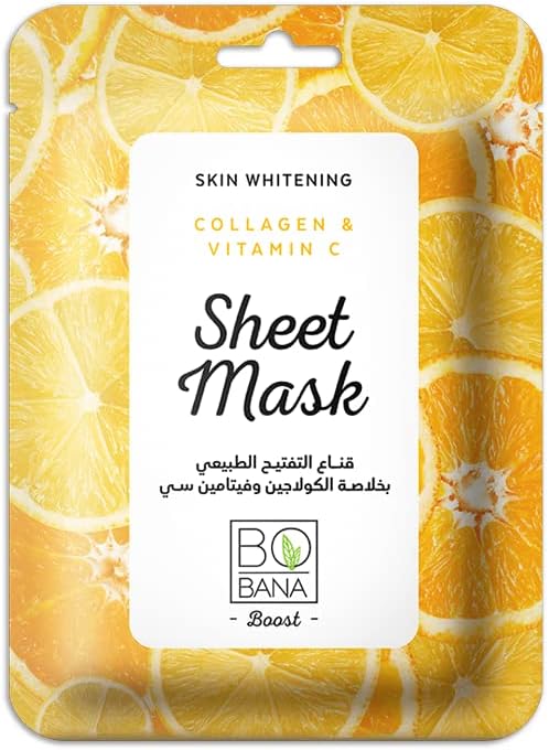 بوبانا، قناع تبييض البشرة بالكولاجين وفيتامين سي/الفحم/الرمان (حسب التوافر)
