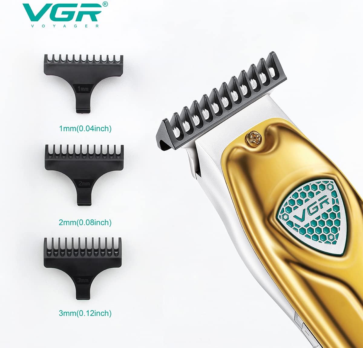 ماكينة حلاقة احترافية بدون اسلاك V-911 من في جي ار وشفرات الستانلس ستيل وكيبل شحن USB مع 3 امشاط للرجال. وقت التشغيل: 180 دقيقة بطارية ليثيوم ايون 1200 مللي امبير لون ذهبي في-911