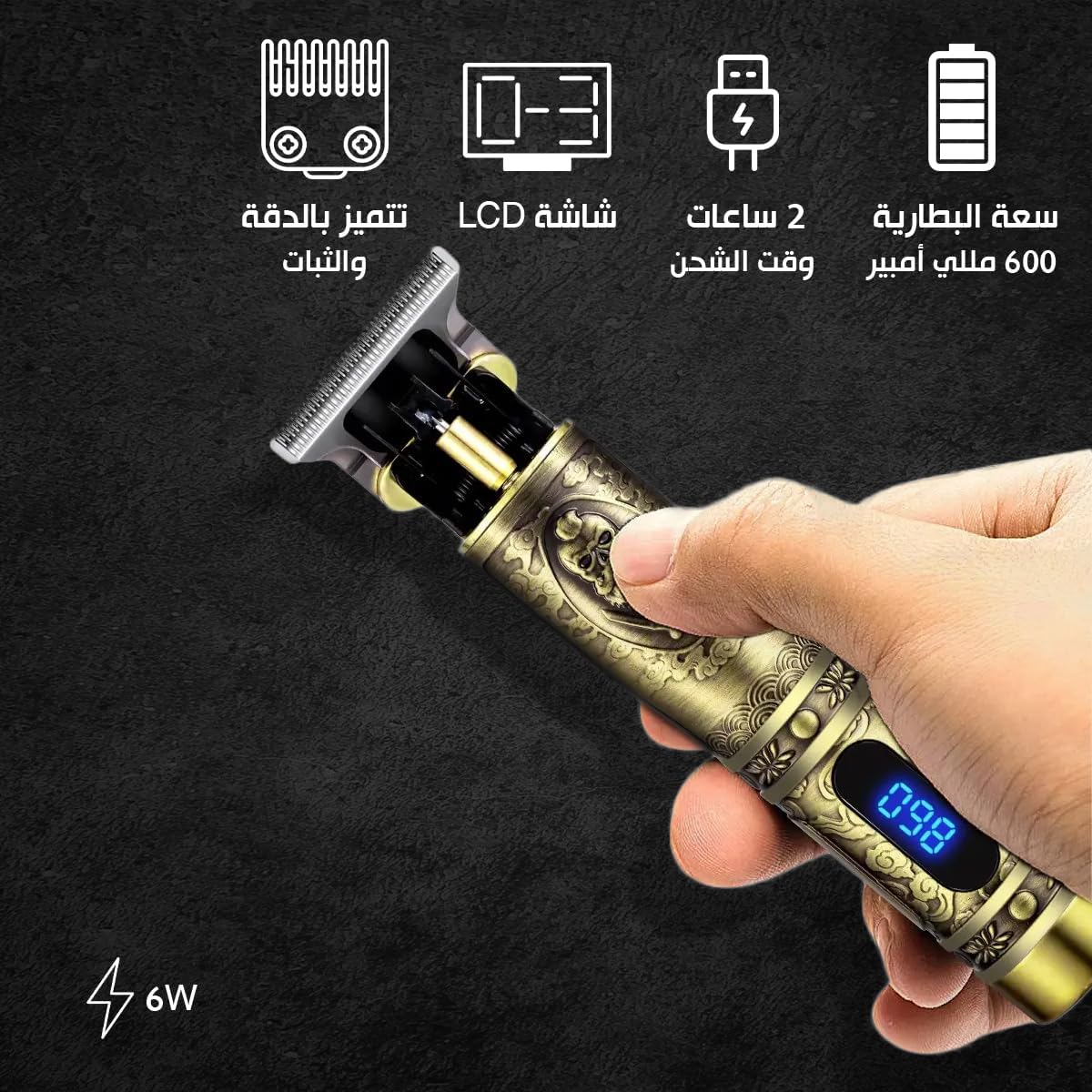 تصميم عصري: تتميز ماكينة الحلاقة من سوكاني بتصميم كلاسيكي متطور يجمع بين الأناقة والعملية. تشير شاشة LED إلى حالة العمل والشحن لمزيد من الراحة والعملية.