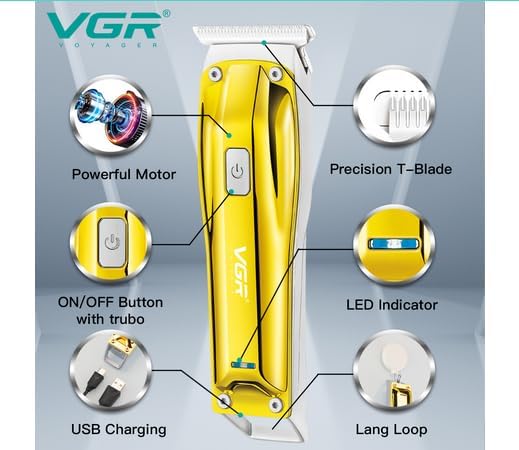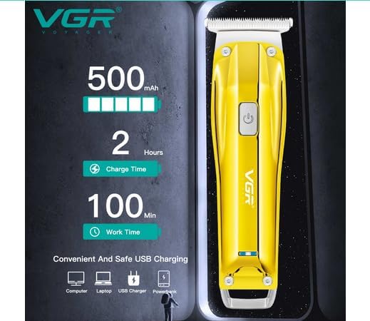 ماكينة حلاقة لاسلكية قابلة لإعادة الشحن من في جي ار، تعمل لمدة 100 دقيقة بعد الشحن، شفرة من الفولاذ المقاوم للصدأ، موديل V-955