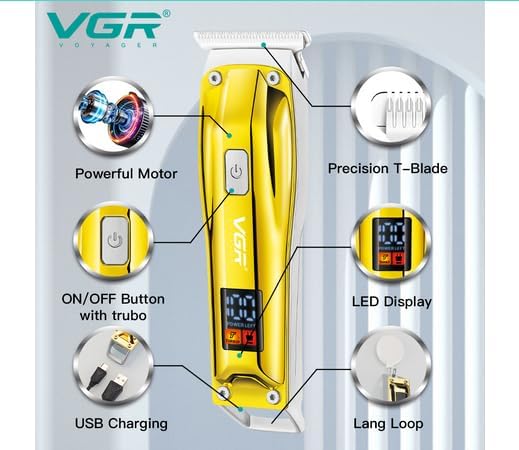ماكينة حلاقة لاسلكية قابلة لإعادة الشحن من في جي ار، تعمل لمدة 100 دقيقة بعد الشحن، شفرة من الفولاذ المقاوم للصدأ، موديل V-956