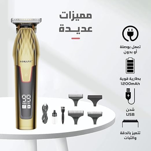 ماكينة حلاقة وتشذيب وقص شعر احترافية لحلاقة دقيقة بدون مجهود من سوكاني، (لون ذهبي) SK-LF-9933