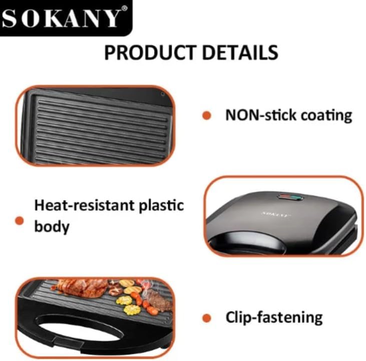 ماكينة صنع الساندويتشات 800 وات من سوكاني، أسود، SK-08110