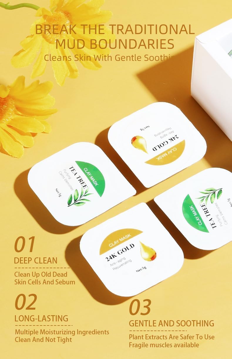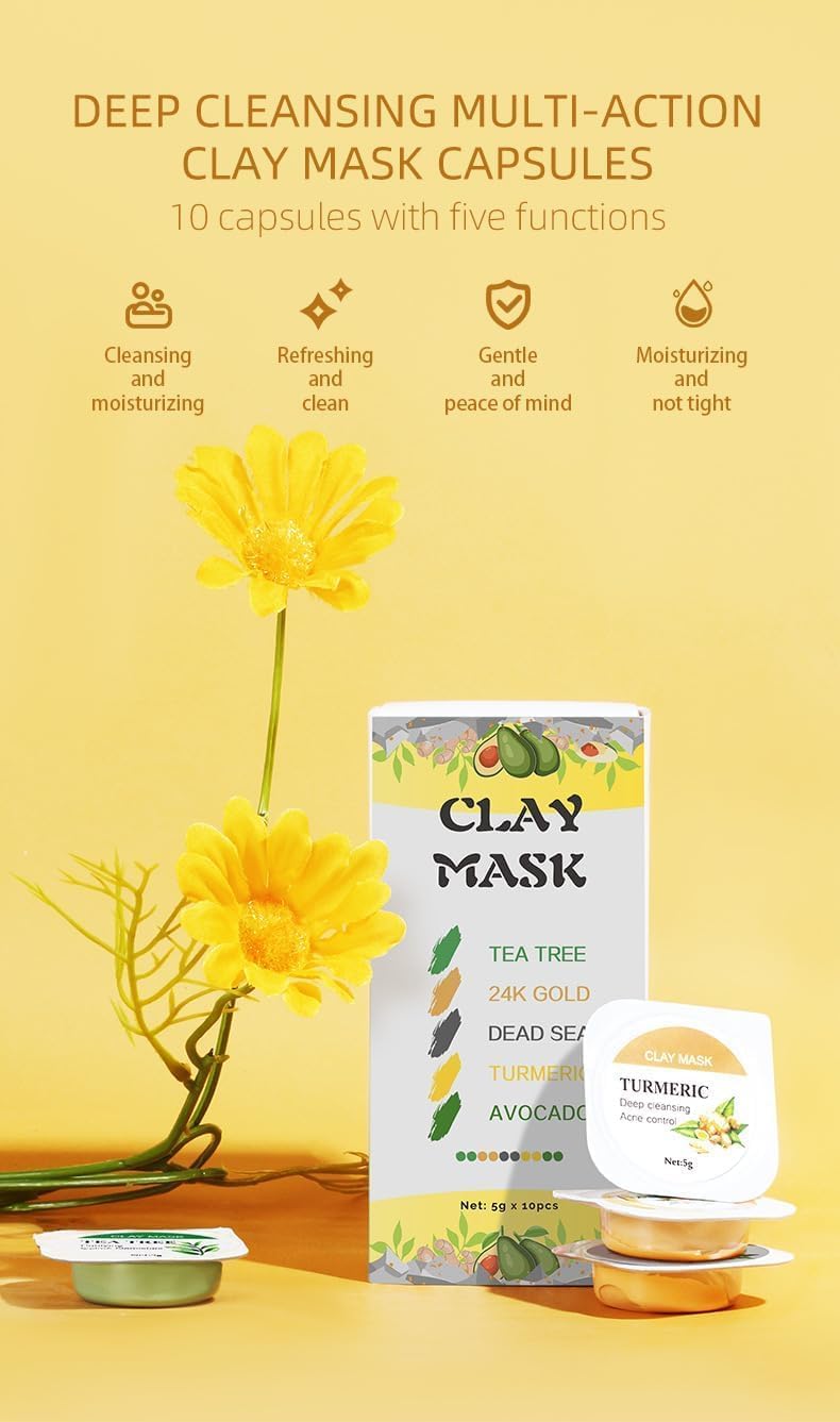مجموعة قناع طين عضوي من فاشون مانيا، قناع وجه من الطين برائحة الكركم والشاي الاخضر الوردي، قناع الطين للوجه لعلاج حب الشباب