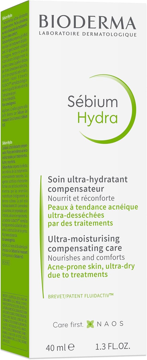 - التفاصيل: كل البشرة، بما في ذلك البشرة الدهنية، تحتاج إلى الترطيب، لأنه يمكن تجفيفها و/أو تهيجها بشكل مؤقت (علاجات محددة، والإجهاد الخارجي، وما إلى ذلك). تم تركيب سيبيوم هيدرا خصيصًا لتعويض هذه الاختلالات بيولوجيًا على المدى القصير. تعمل عوامل الترطيب (الجليسيرين) وإعادة البناء (السيراميد) في سيبيوم هيدرا على مكافحة التشقق وإحساس الشد. عوامل مهدئة قوية (إينوكسولون وألانتوين) تقلل الاحمرار وتهدئ البشرة. دي ايه اف (تركيبة متطورة من قبل أطباء الجلدية) مركب طبيعي حاصل على براءة اختراع يزيد من حد تحمل البشرة. يحتوي سيبيوم هيدرا أيضًا على مركب فلويد أكتيف الحصري الحاصل على براءة اختراع والذي ينظم جودة الزهم بيولوجيًا، مما يحافظ على المسام من الانسداد ويقلل من تكوين النمش.
