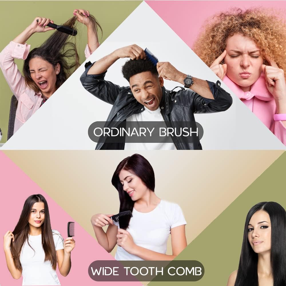 مشط واسع الأسنان لتجعيد الشعر: تضمن الفجوات المناسبة في الأسنان التقليل الفعال لشد الشعر وتقصفه، وبالتالي تعزيز النمو وتقليل التلف. يتمتع المنتج بأسنان عريضة مستديرة ومسطحة، بحيث توفر الحماية لفروة رأسك وتقوي وتمنح شعرك المجعد المظهر المتألق