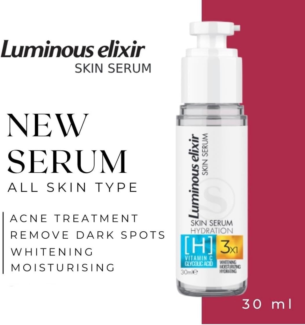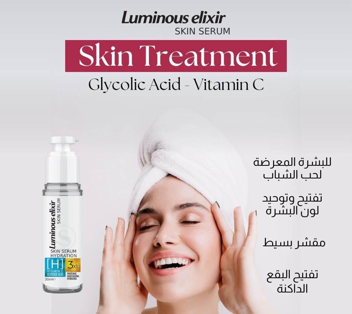 مصل لومينوس – 3 × 1 تبييض الندوب مرطب مزيل البقع الصبغية العناية بالوجه ضد لعلاج العمرية الكلف 30 مل من جيه اند فارما حساس للجنسين .