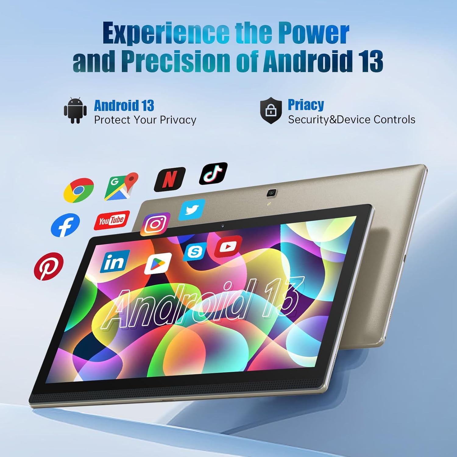 UPGRADED ANDROID 13 TABLET: MESWAO Tablet is equipped with a new upgraded system “Android 13”,OTA first version for hardware that fits our tablets and supports online system updates, providing a more personalized, safe and easy-to-operate system experience. You can install apps like Netflix, TikTok, YouTube, LINE, Yahoo, Twitter from the Google Play Store on your GMS certified tablet