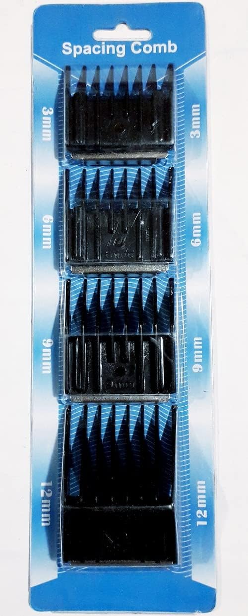 4 Set of 3, 6, 9 and 12 Hair Grading Combs Fits All Shavers Made of Plastic and Solid Zipper