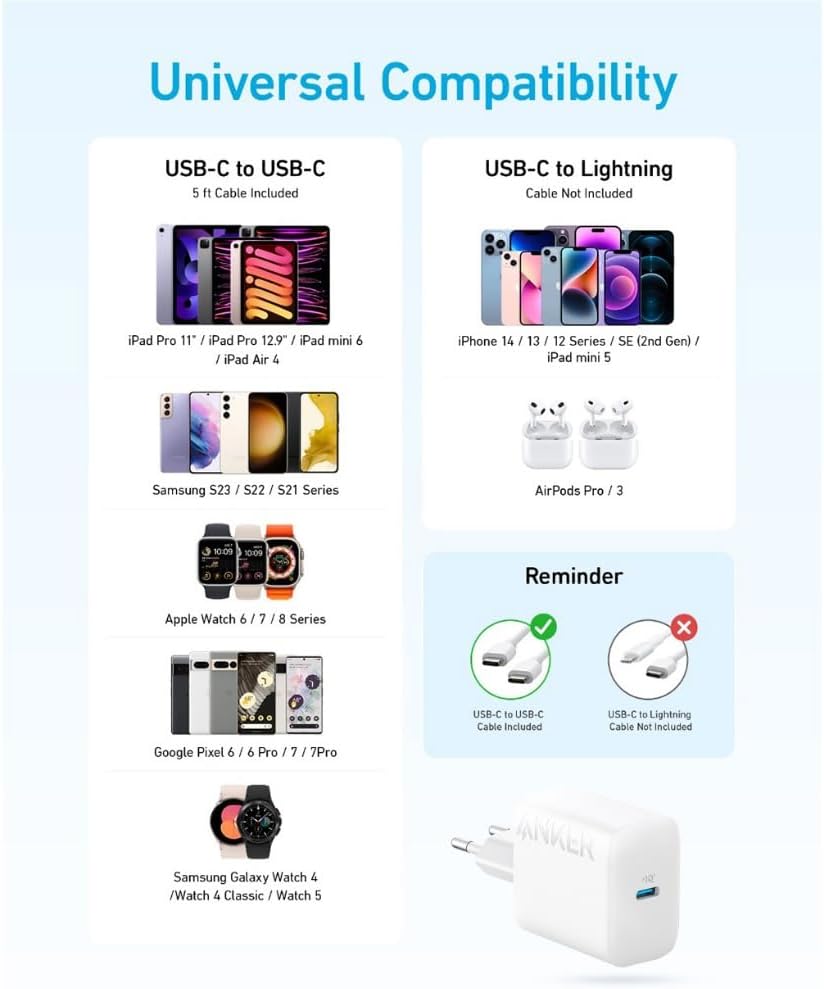 Space-Saving Design: At 50% smaller than a standard iPhone 12 USB-C charger, Anker provides plenty of power while saving space in your bag or while plugged into a wall outlet.