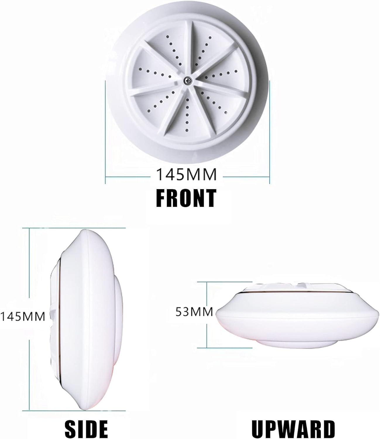 ✓[Compact and Multipurpose Design]: 9CM / 3.54inch in diameter, 320 grams in weight, it does not take up much space.It is designed with your ease and comfort in mind while in use.Compact and tucked away when not.Suitable for summer clothes and personal laundry,put it into a bucket or a bathroom sink, kitchen sink, let the ultrasonic wave remove dirty.Especially convenient during the journey.
