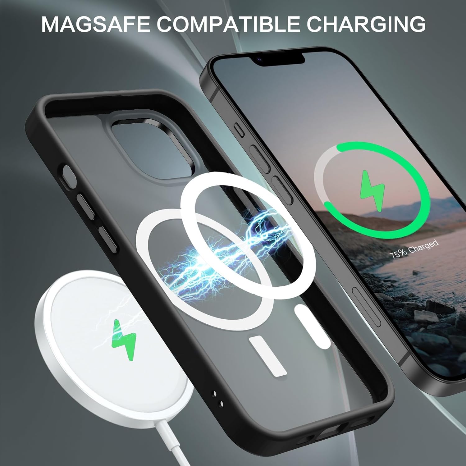 【Compatible with MagSafe Accessories】 This iPhone 13/14 Phone Case, with a built-in magnetic ring that aligns perfectly with MagSafe chargers and other Qi-certified chargers, offers a strong attach experience and faster wireless charging. This iPhone 13/14 Case magnetism is super strong, it can be firmly connected with all magnetic accessories such as Magnetice chargers, wallets, battery packs, car mounts, etc.,using chargers and other Qi wireless chargers and will not affect the signal.