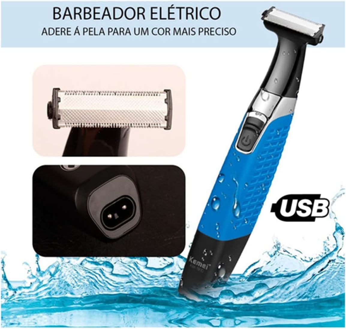 – Single blade w/ cutting device;- Power: Rechargeable battery;- Life time: 55 minutes;- Charging time: 2 hours;- Power: 3W- Material: ABS – Application: Front – Washing mode: All body and washable;- Color: Varies according to stock availability.- Size: 18 X 3.60 Cm.Items Included os:- 01 kemei Razor 1910- 04 1/2, 4 and 6mm Combs;- 01 USB Charging Cord (Not Cop Source) Note: Can be used on the cell phone, or connected to USB sockets.- 01 Cleaning Brush;- 01 Original Box Box;- 01 Manual (English)