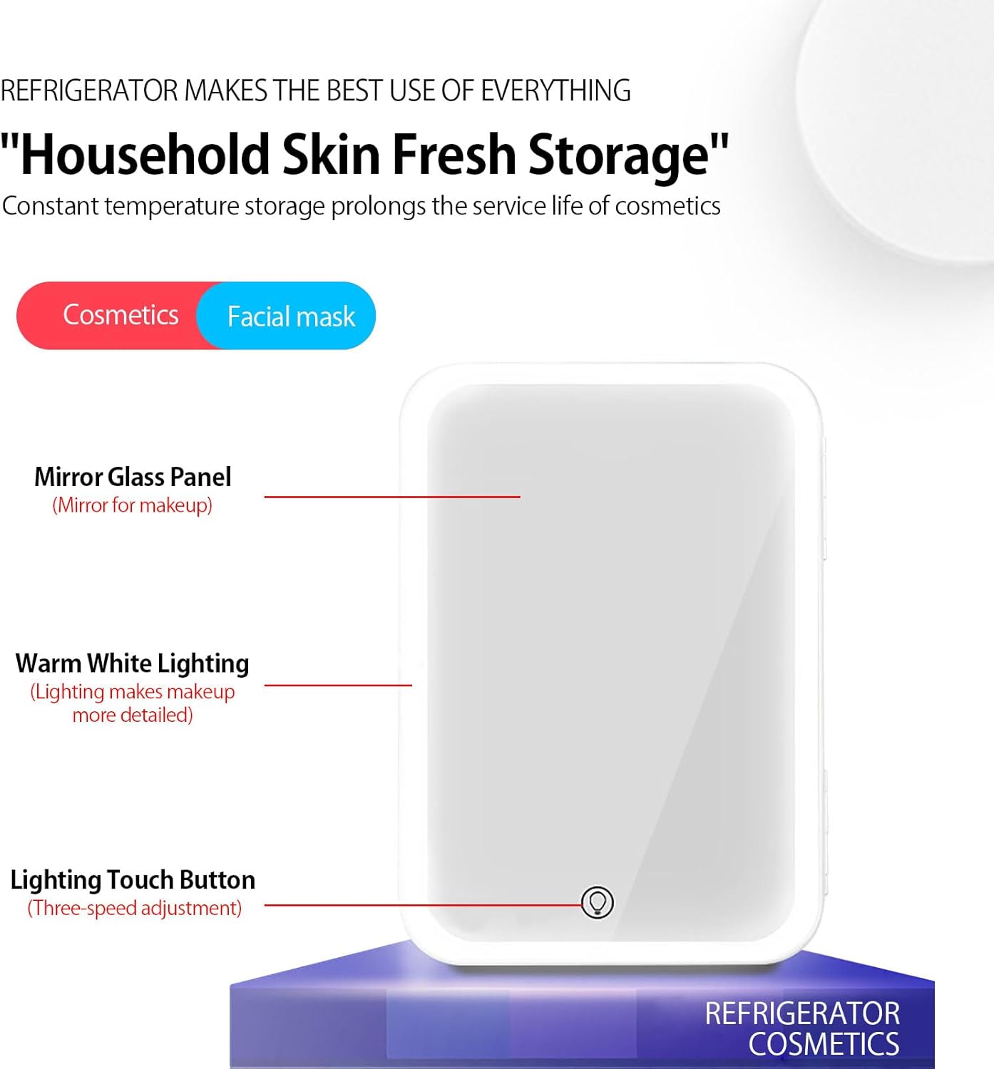 BONITA Mini Makeup Fridge, 8L Portable Cosmetic Refrigerator, Glass Panel And Led Lighting, Cooler/Warmer Freezer, Used for Beauty Skin Care in Home,White (White)