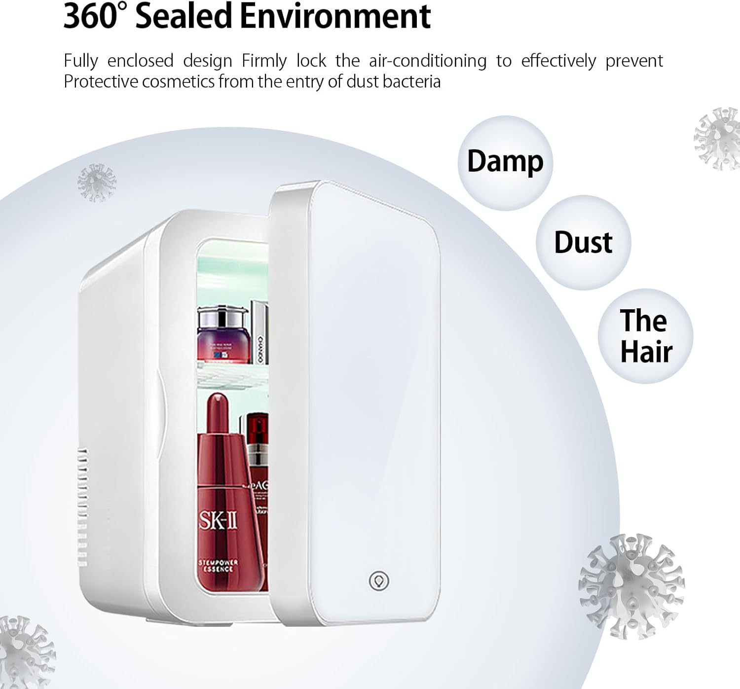 6 LITERS Beauty Fridge: 6L capacity that measures 19.5x26x28 cm and weighs 5 lbs. The removable shelf makes small items like skincare, cosmetic easy to separate, best gift for women and girls.
