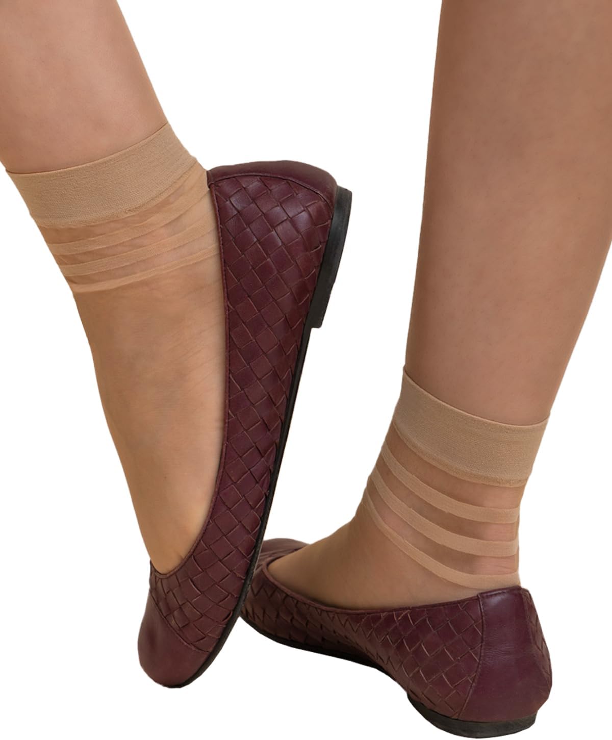 Charmaine Women Ankle-High Ultra Sheer Socks With Striped Cuffs
