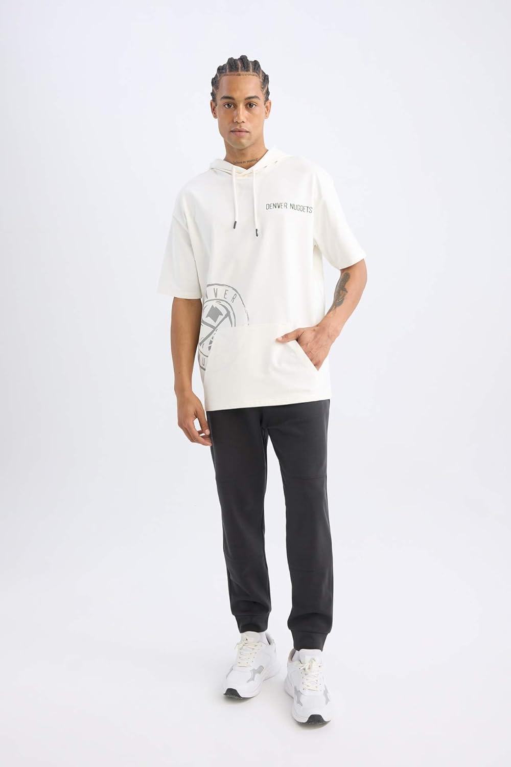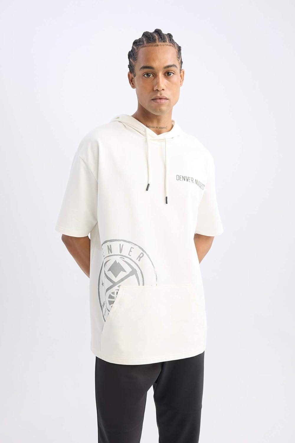 DeFacto Man Oversize Fit Hooded Short Sleeve Ecru Knitted T-Shirt