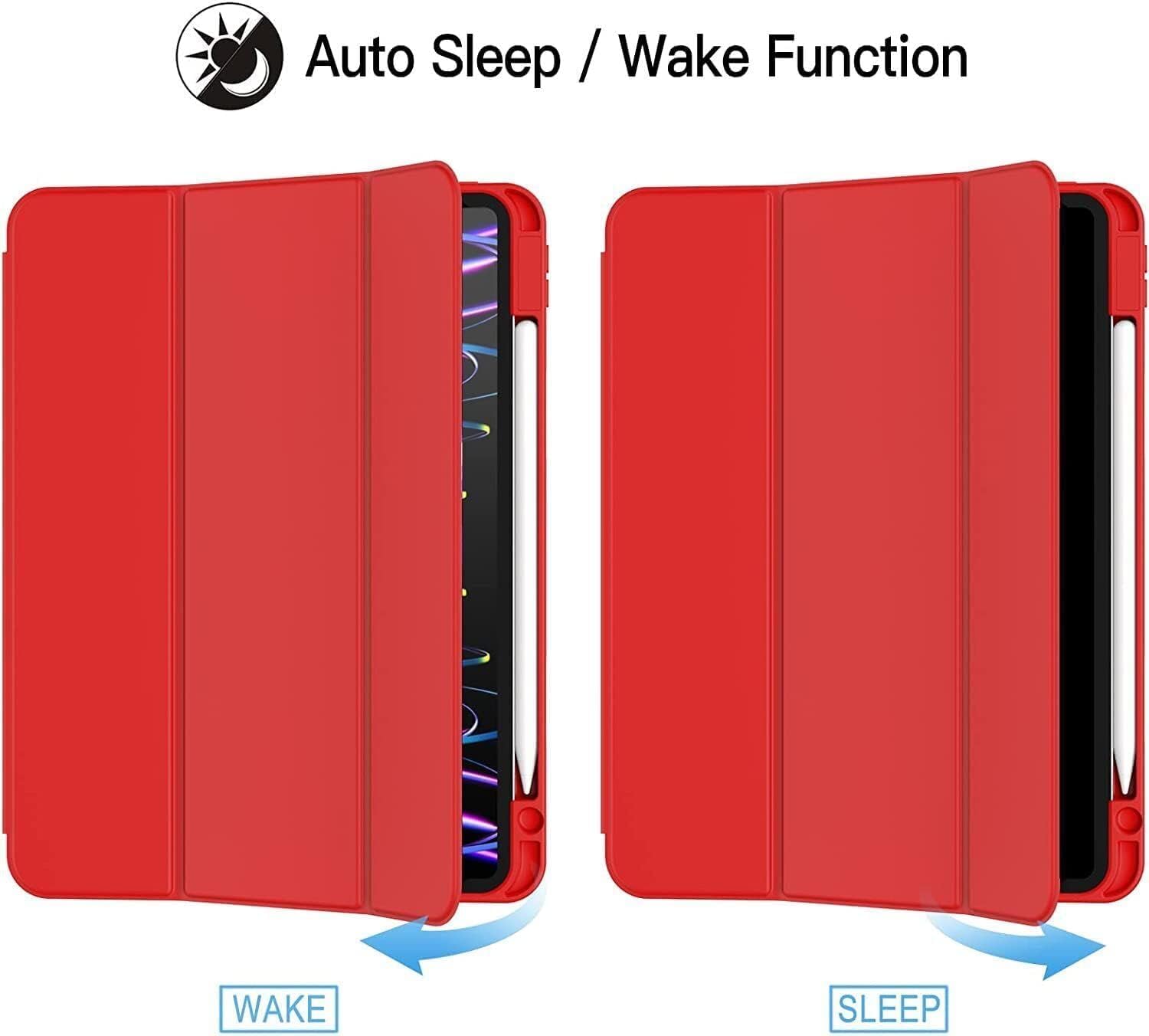 ELMO3EZZ جراب ايباد سمارت يدعم شاشة تعمل باللمس وخاصية تشغيل/ايقاف تلقائي مع حامل قلم جيل ثاني للشحن التلقائي، لايباد برو الجديد 11 بوصة 2022 (جيل رابع)/2021 (جيل ثالث)/ 2020 (جيل ثاني) من (Red)