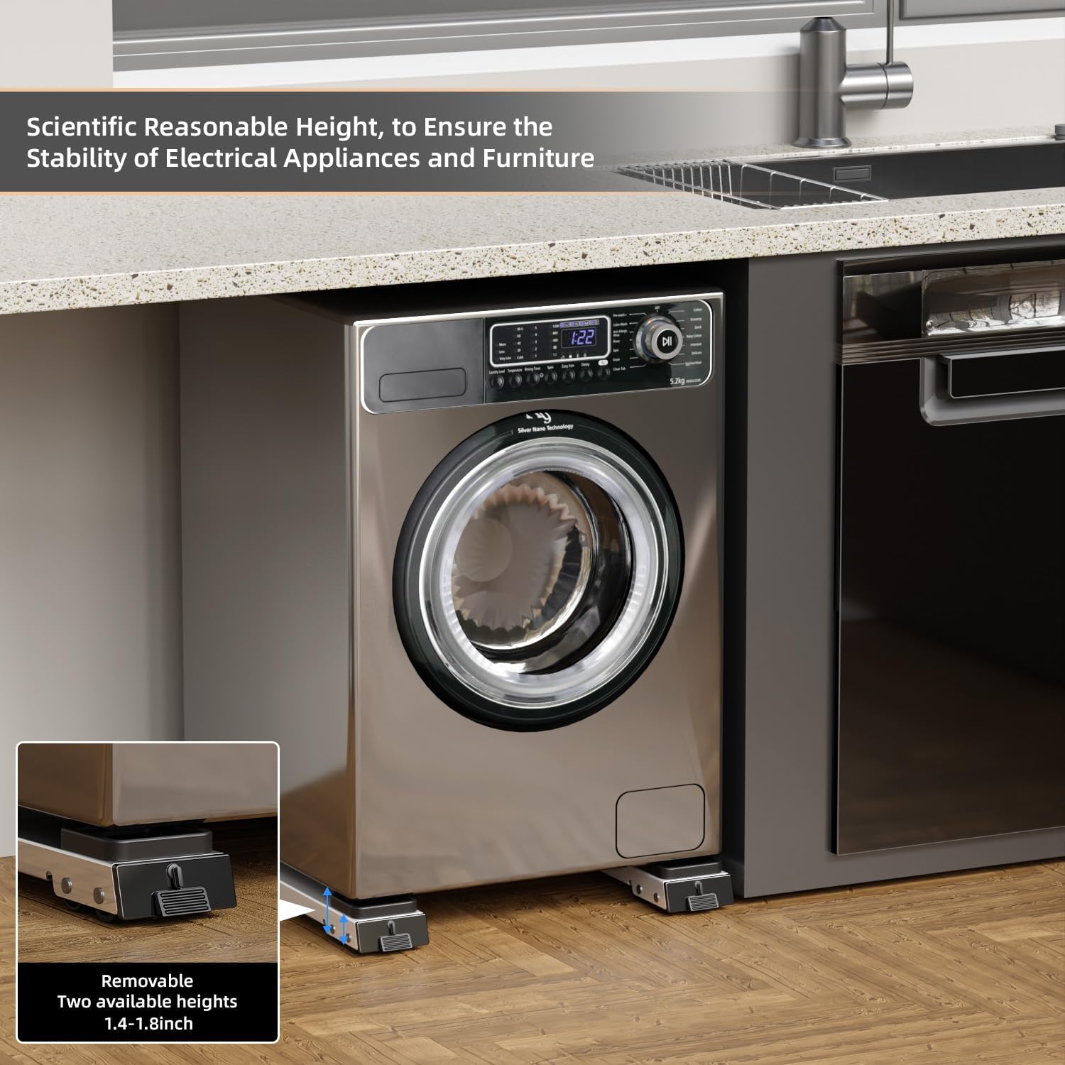 The Adjustable Base for Washer and Dryer More Stable Upgraded material 16 high-quality anti-skid wheels with grooves,With a weight capacity of up to 660lbs,Save your back and floors from damage caused