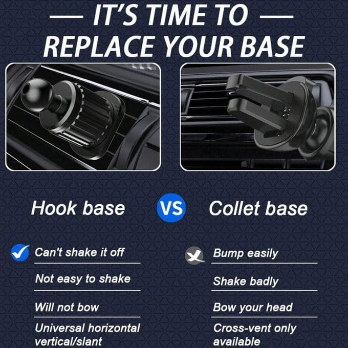 Never Fall Off, We’ve Greatly Enhanced The Phone Holder Material Of The Air Clip Hook Is Upgrade To Metal. We strengthened its body so the phone holder of the car conditioner slot fits tightly to most vehicles. At the same time the mobile car mount can work better even in harsh environments.