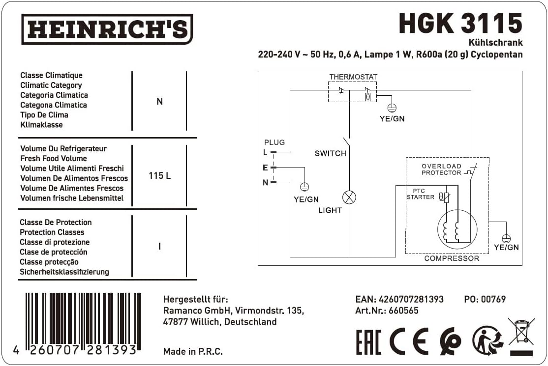 شراء Heinrichs, Mini Fridge with Glass Door, Compact and Quiet: 41 dB, LED Interior Lighting, Perfect for Office, 5 to 18 °C, Black (115 Litres/4 Shelves/41 db) [Energy Class E] (115) اون لاين من امازون او نون Heinrichs, Mini Fridge with Glass Door, Compact and Quiet: 41 dB, LED Interior Lighting, Perfect for Office, 5 to 18 °C, Black (115 Litres/4 Shelves/41 db) [Energy Class E] (115)