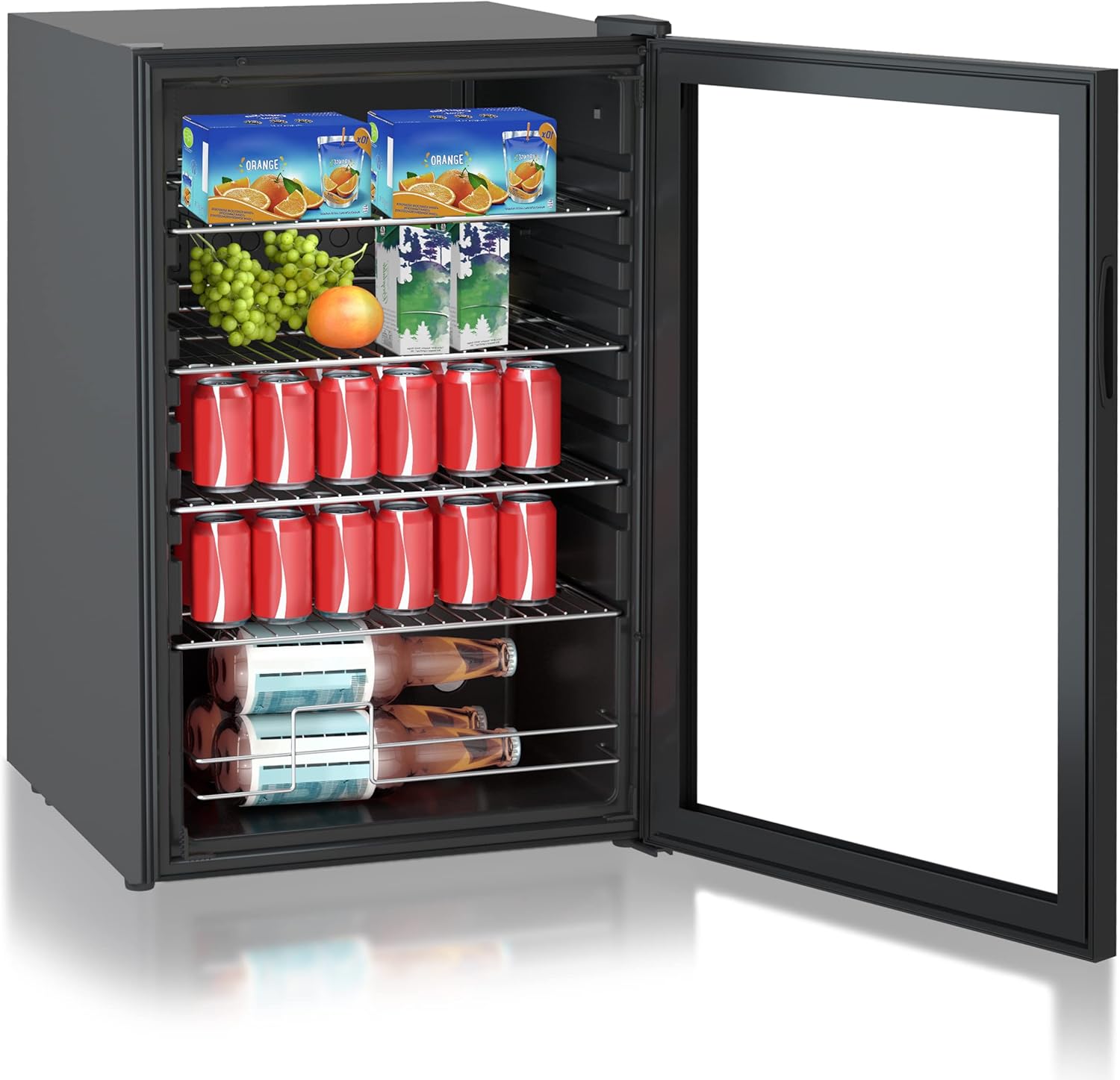 Heinrichs, Mini Fridge with Glass Door, Compact and Quiet: 41 dB, LED Interior Lighting, Perfect for Office, 5 to 18 °C, Black (115 Litres/4 Shelves/41 db) [Energy Class E] (115)