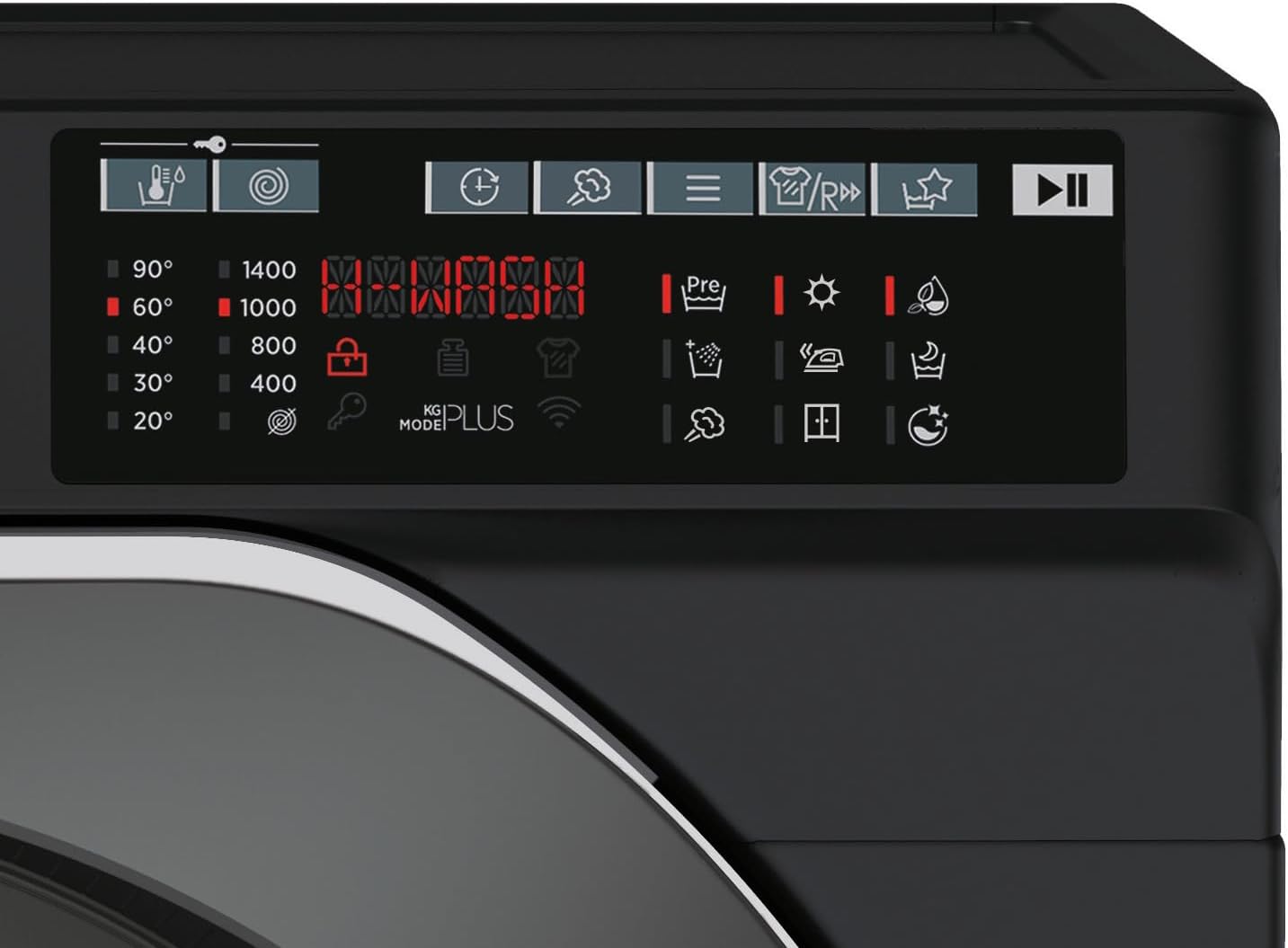 HOOVER Washing Machine Fully Automatic Washing Machine capacity : 14 Kg Dryer capacity : 9 Kg Max spin speed : 1400 RPM Body color : Black Door width : 64 cm Door opening : 180° Black door with chrome ring With drain pump ECO Power Inverter motor Steam function Scan to care option Active wash program Night and Day program Drum clean program WIFI KG mode plus 3D wash ALL IN ONE technology Power care system Extra rinse With filter Big touch LCD display Italian technology Temperature selection from 20°C to 90°C Spin speed from 400 to 1400 RPM Child lock Energy efficiency class : A+++ Voltage : AC 220-240 Volt Multi programs :- Auto care / Total care program All in one in 59 mins program Rapid care program in (14-30-44) mins Soft care program Rinse program Drain and Spin program Synthetic and Colored program 20°C program Wool and Hand wash program ECO 60-40°C program Cottons program Dry wool program Low heat program High heat program hOn app : – Remote control – Maintenance notification – Top efficiency – Voice assistant – Hints and tips Buttons selection :- Start / Pause Options button ( PreWash – Extra Rinse – Hygiene Plus ) Drying selection button Rapid / Stain level Delay start 24 hours New programs buttons ( Active Wash – Night and Day – Drum Clean ) Spin speed Temperature selection Washing Machine dimensions (mm) :- Width x Height x Depth : 600 x 850 x 670 Washing Machine weight :- Net weight : 75 Kg Gross weight : 77 Kg Country of origin : China Warranty : 5 Years full free warranty