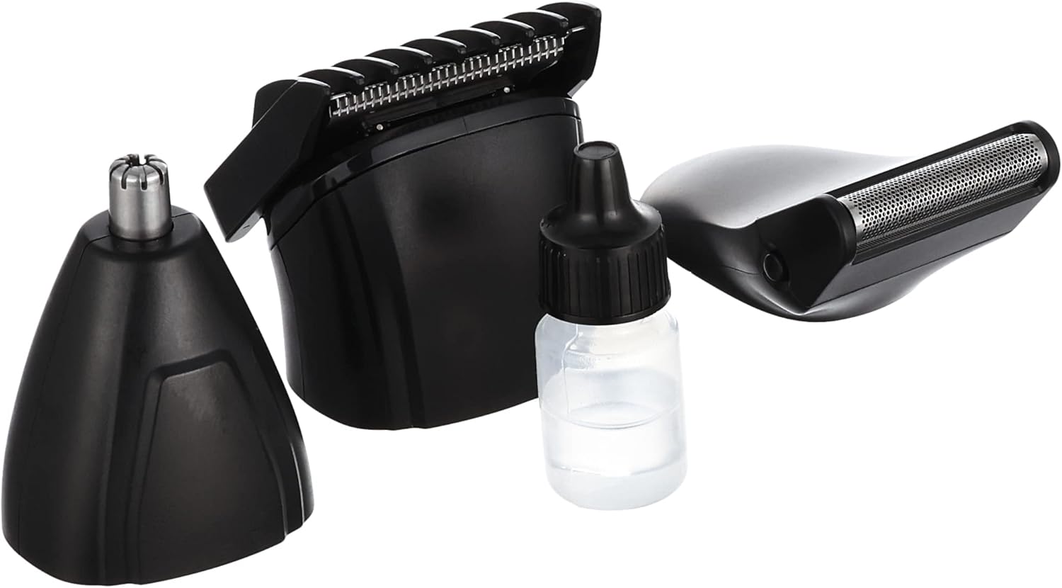 Multifunctional 3 Head Hair Shaver Head and Beard Shaver 4 Level Staging Comb Calmus Chin Head Head Head Head Nose Ear Hair Removal Blade Sideburns Hair Liner (Accessories Maintenance Oil Bottle Cleaning Brush Charging Cable 2 Rechargeable Pen Battery Hands-change).