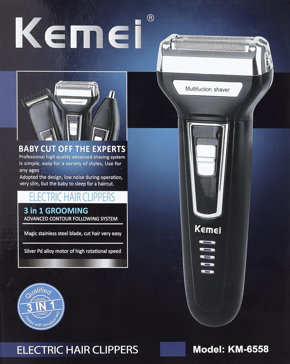 شراء Kemei KM-6558 3in1 Rechargeable Nose Trimmer & Hair Clipper – Black/Silver اون لاين من امازون او نون Kemei KM-6558 3in1 Rechargeable Nose Trimmer & Hair Clipper – Black/Silver