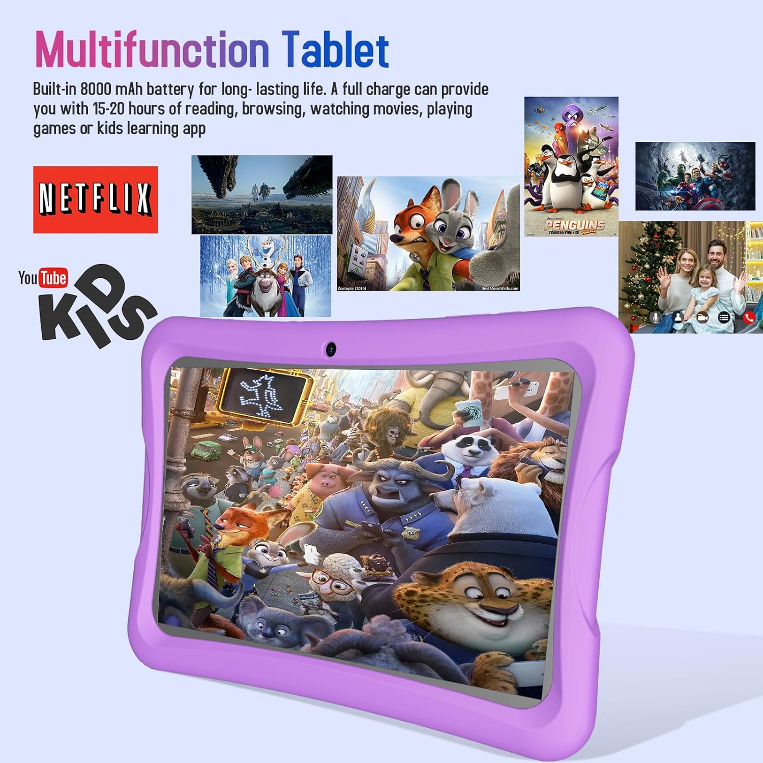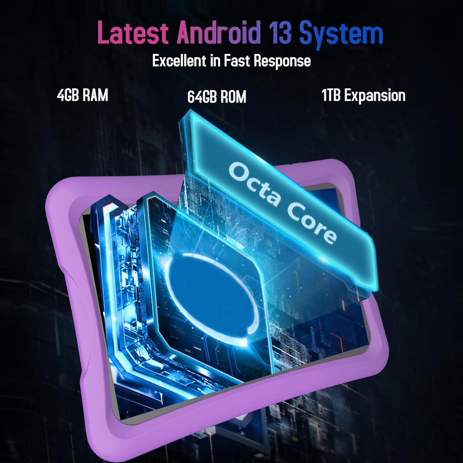 【LATEST ANDROID 13 + EXPANDABLE STORAGE】This 10-inch kids tablet, powered by an Octa-core processor running Android 13, delivers smooth multitasking and performance. It comes with 4GB of RAM and 64GB of storage, expandable up to 1TB with an SD card, giving you plenty of space for apps, videos, and photos. LONG-LASTING 8000mAh BATTERY: Offers up to 15 hours of use on a single charge. Plus, with a 2-year worry-free guarantee, you get free replacements if it breaks