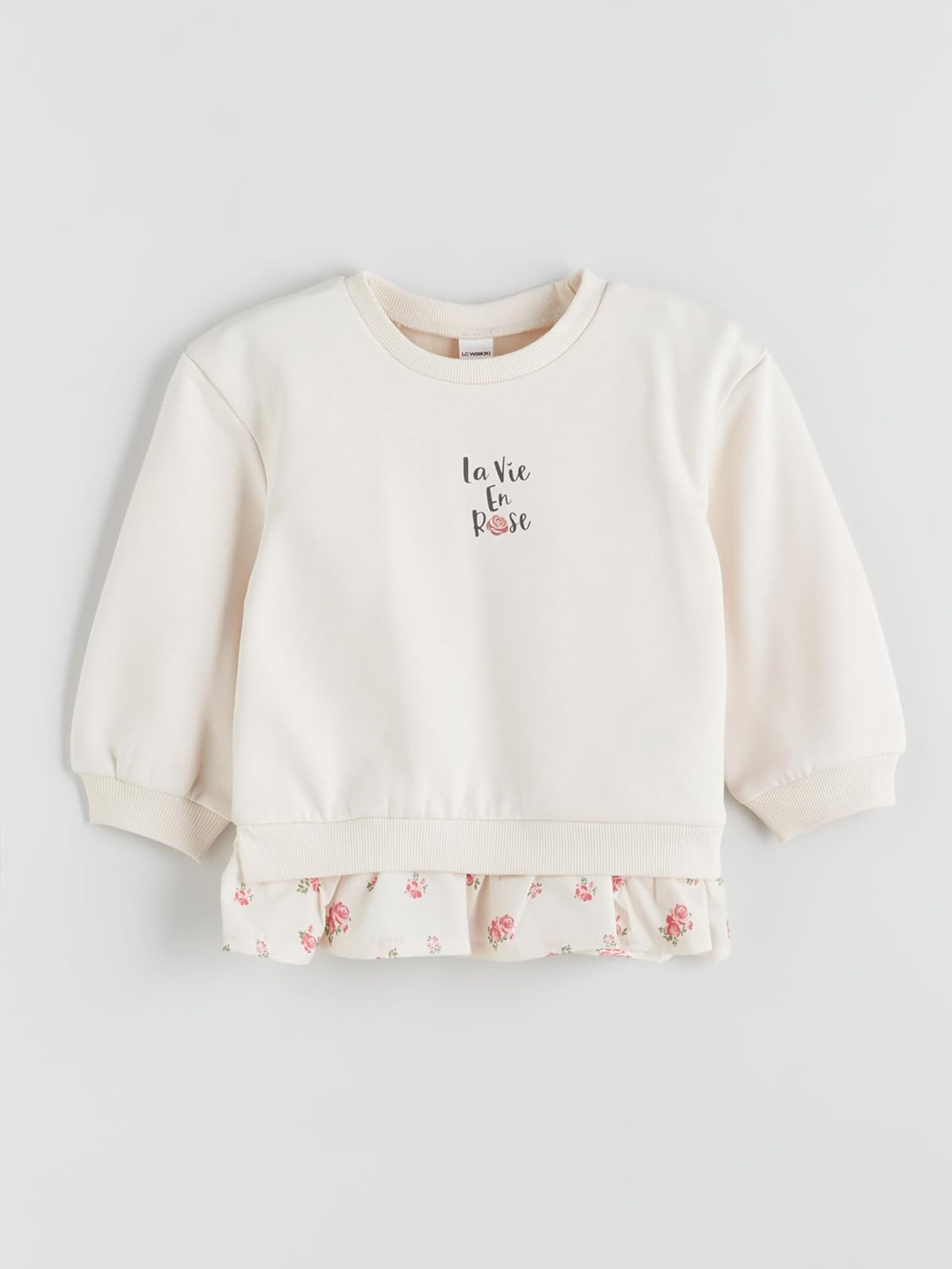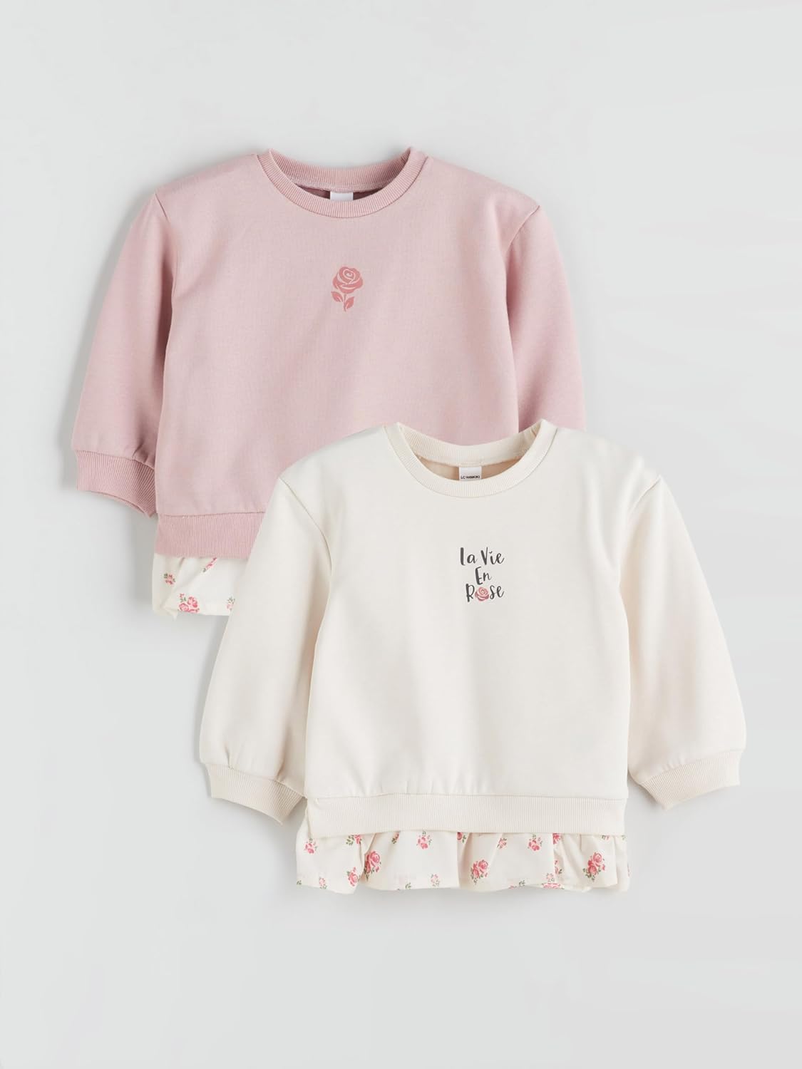 LC واكيكي سويت شيرت مطبوع برقبة دائرية ضيقة للبنات، عبوة من قطعتين