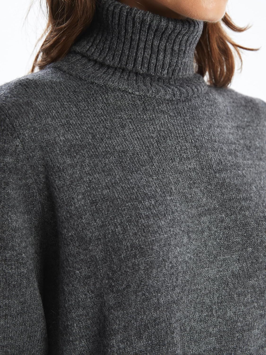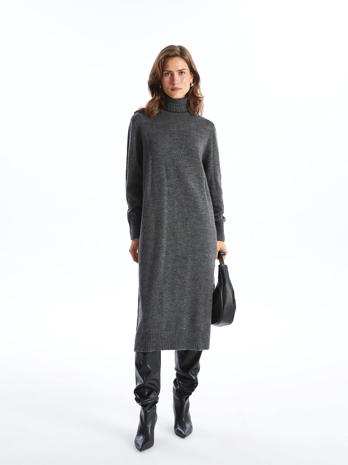 LC WAIKIKI Women Turtleneck Plain Long Sleeve Oversize Knitwear Dress