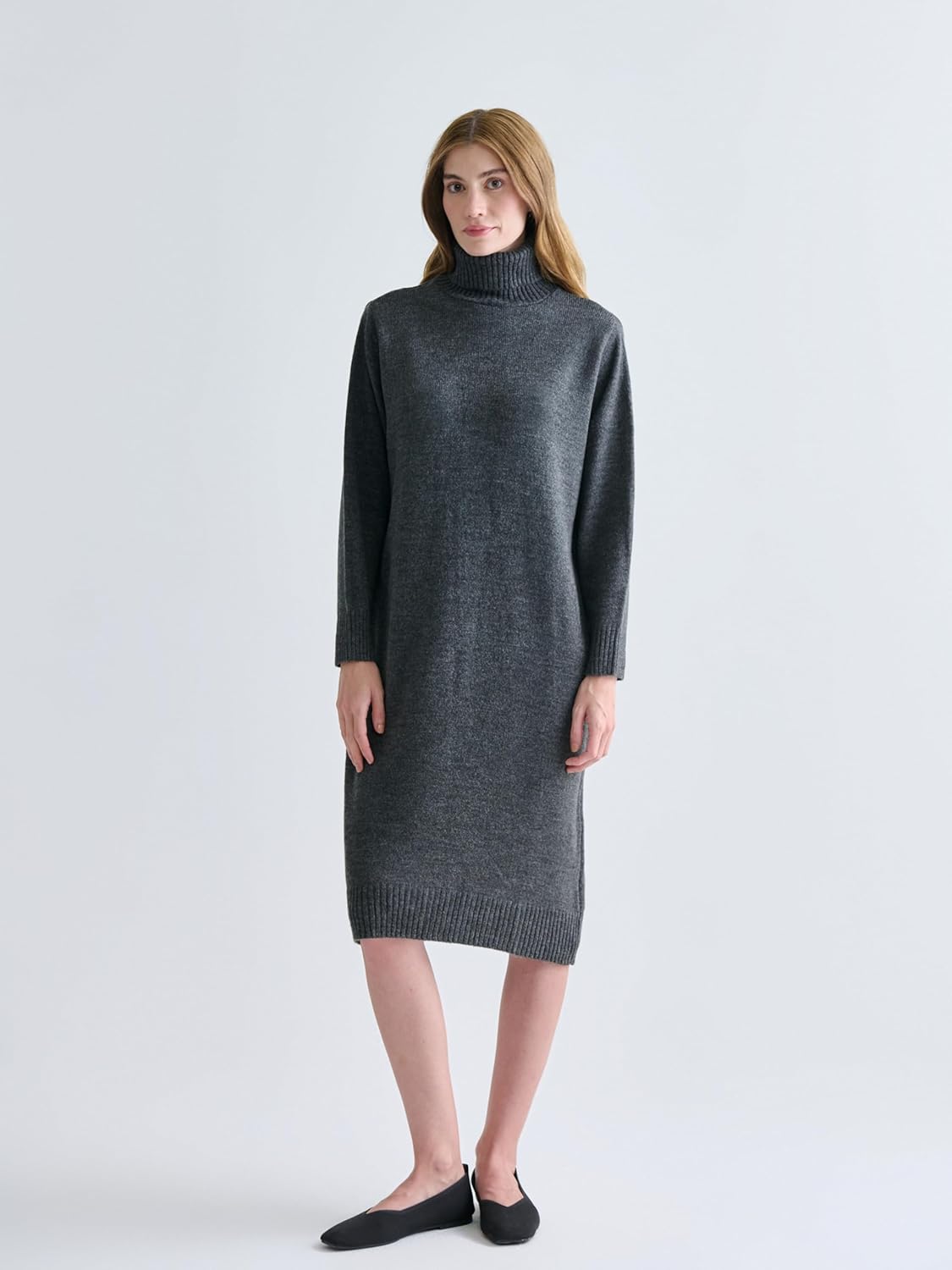 شراء LC WAIKIKI Women Turtleneck Plain Long Sleeve Oversize Knitwear Dress اون لاين من امازون او نون LC WAIKIKI Women Turtleneck Plain Long Sleeve Oversize Knitwear Dress