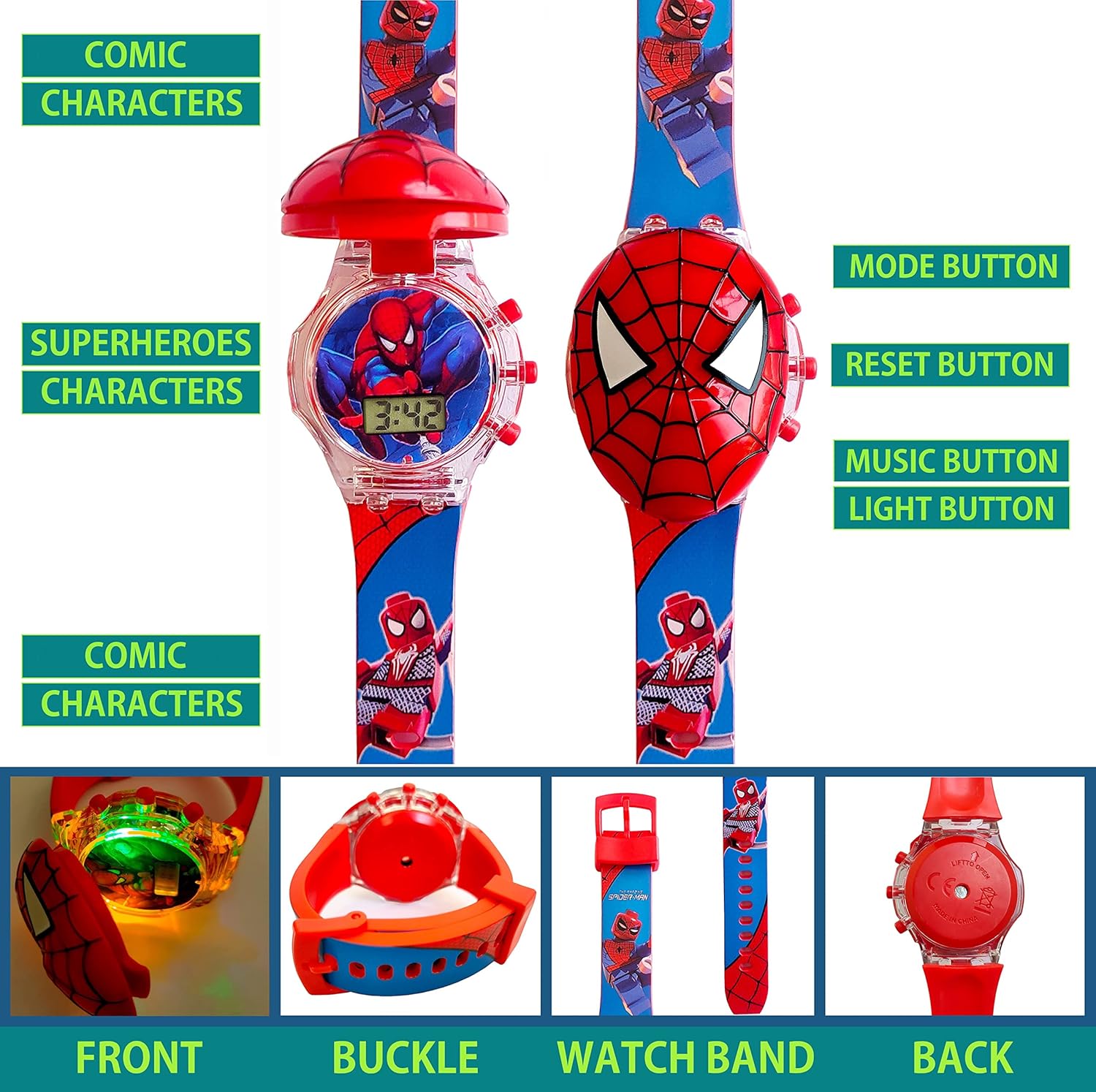 Matrix Kids Edition Spiderman with Lights & Music Digital Watch for Kids, Red, Free Size