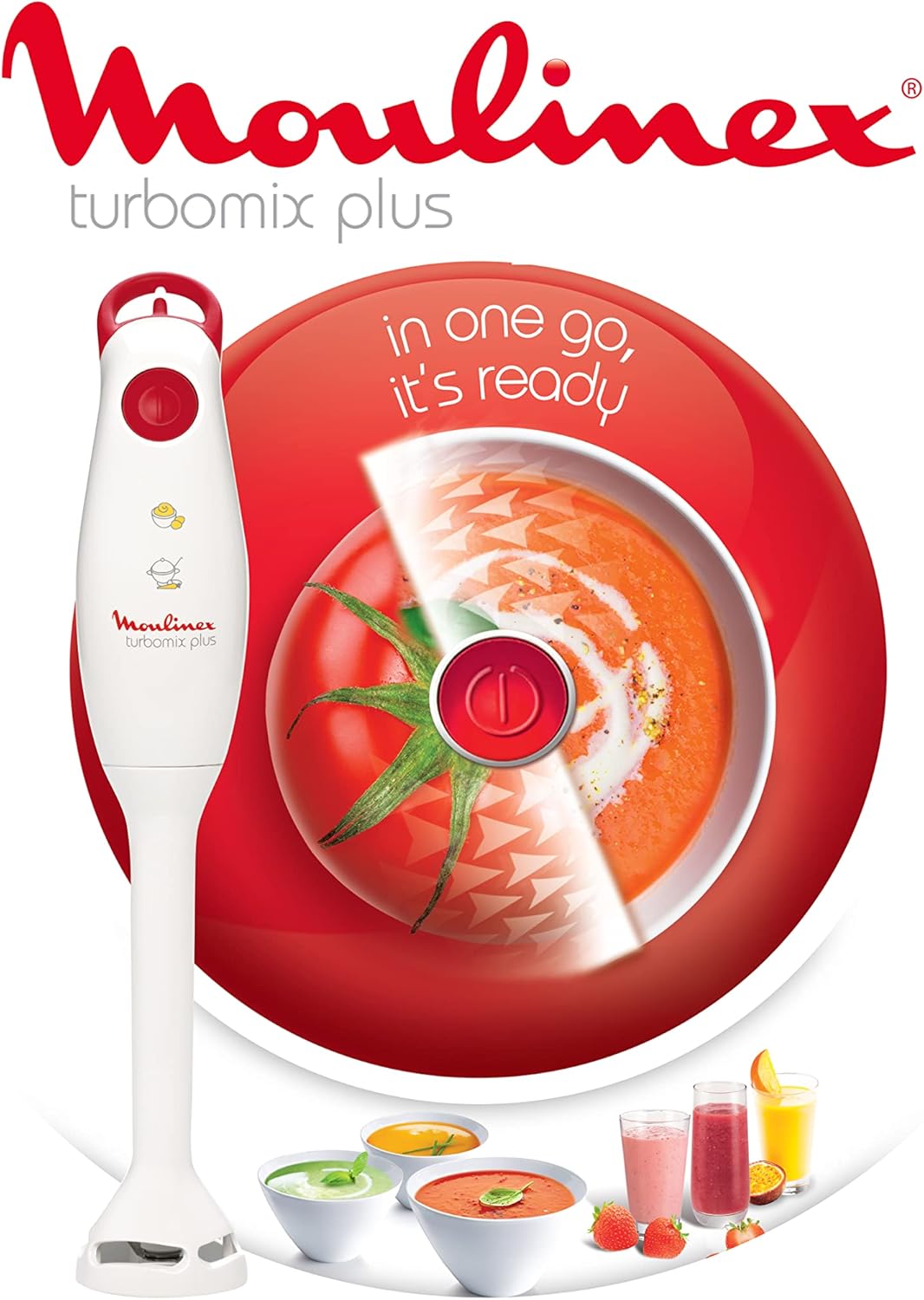 شراء Moulinex DD1001EG Turbomix Plus, Hand Blender, 350 Watts, 800 Milliliters Plastic Beaker, 2 Blades, Hang-Up Ring, White and Red اون لاين من امازون او نون Moulinex DD1001EG Turbomix Plus, Hand Blender, 350 Watts, 800 Milliliters Plastic Beaker, 2 Blades, Hang-Up Ring, White and Red