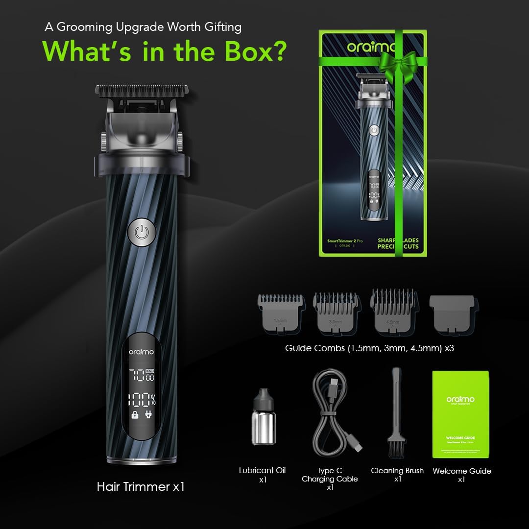 Oraimo SmartTrimmer 2 Pro | High Precision Beard Trimmer with 0.5mm Close Shaving & Adjustable Blade Head | Dual Speed Control with 150 Min Runtime | Digital Display & Travel Lock (Deep Blue) | Gift
