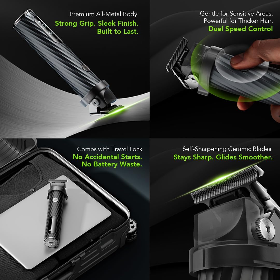 Ceramic Blade with Skin Protection: Non-corrosive, self-sharpening ceramic blades with 0.5mm precision that stay sharp longer and deliver smooth, irritation-free grooming.