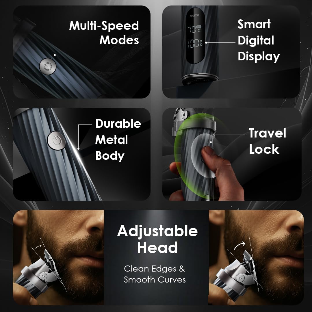 Digital Display & Travel Lock: Stay informed with real-time battery info and protect your trimmer during travel with built-in safety lock.