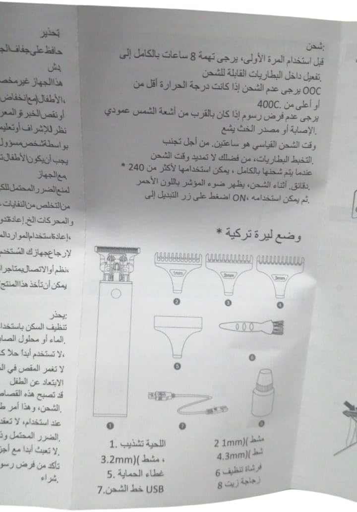 ✪️ PACKAGE CONTENTS SHAVE – USB Battery Charging Device – 1200 mAh Battery – Gradual Combs – Cleaning Brush – Cleaning Oil – User Manual