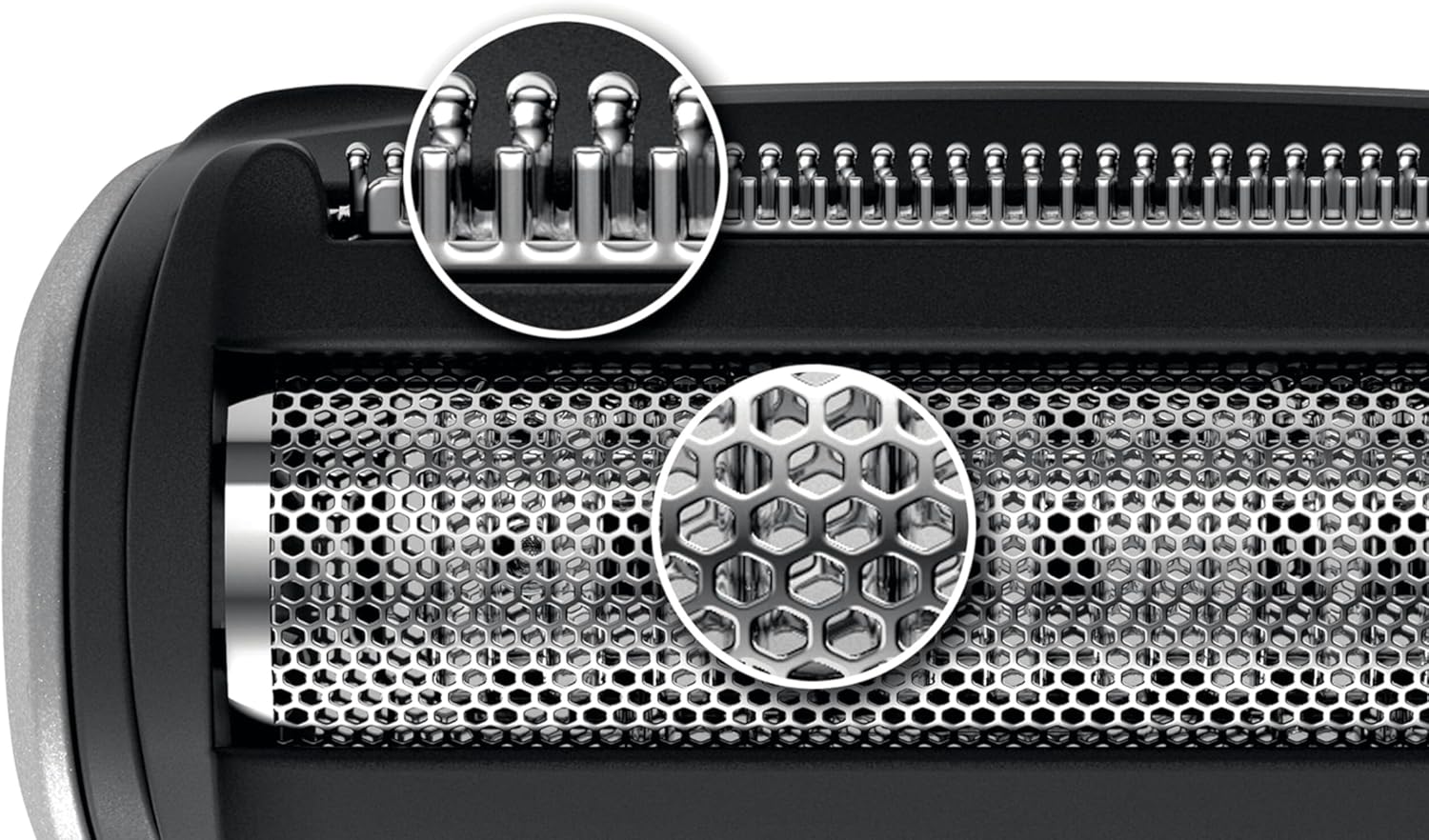 SKIN FRIENDLY MEN BODY SHAVER – Safely and comfortable shave on your delicate skin thanks to its rounded edges and hypoallergenic grid