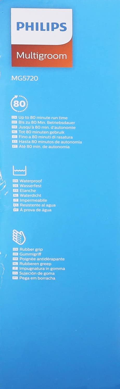 Philips MG5720 Multigroom 9-in-1, Face, Hair and Body 9 tools, DualCut technology, Up to 80 min runtime, Waterproof – International Warranty