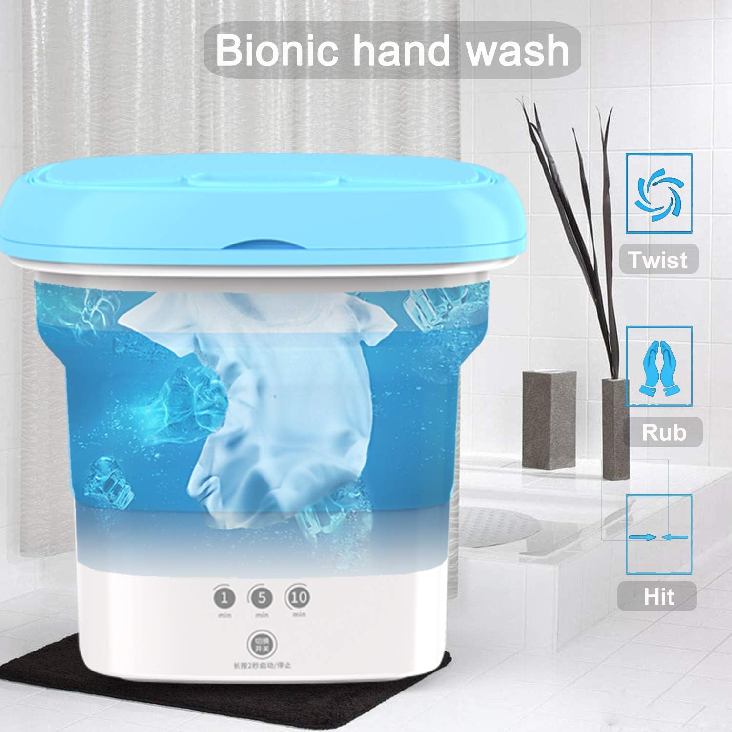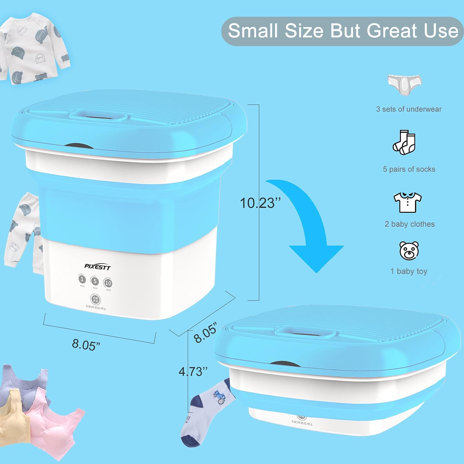 Portable Washing Machine, Mini Folding Washing Machine with Timing and Dehydration Function for Washing Baby Clothes, Traveling, Apartment Dorm – Blue