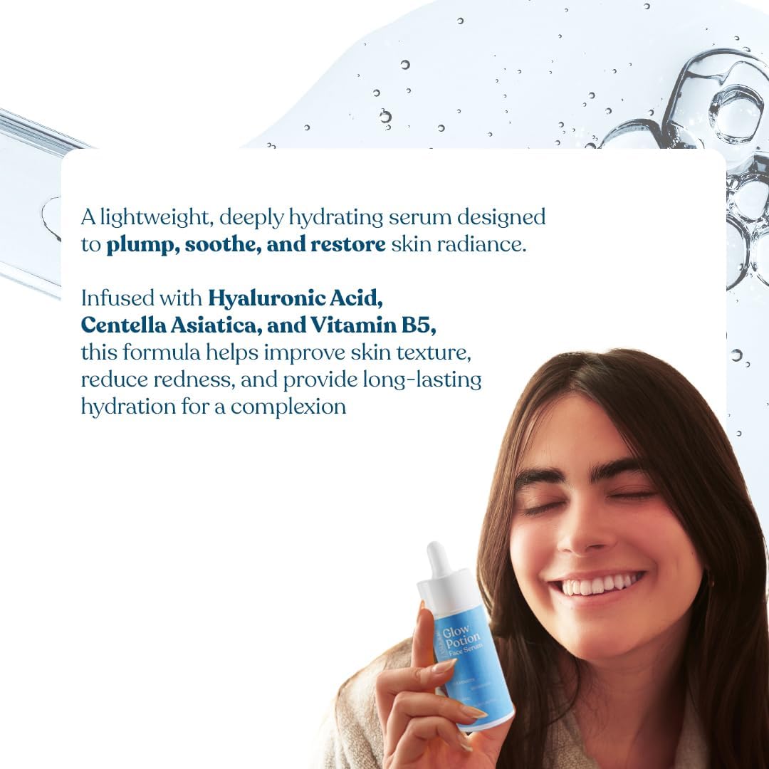 Unlock radiant, balanced, and deeply hydrated skin with Glow Potion Serum, a lightweight yet powerful facial serum crafted to deliver intense hydration and visible skin-soothing results. Perfect for daily use, this serum combines Hyaluronic Acid, Centella Asiatica, and Vitamin B5, three skin-loving ingredients known for their ability to hydrate, soothe, and restore the skin barrier. Hyaluronic Acid helps to plump the skin from within, drawing in moisture to reduce fine lines and create a naturally dewy glow. Centella Asiatica, also known as Cica, is a calming botanical that reduces redness, irritation, and inflammation, making it ideal for sensitive skin or post-sun exposure. Vitamin B5 (Panthenol) supports skin healing and barrier repair, leaving your complexion looking smooth, healthy, and refreshed. The serum’s lightweight, fast-absorbing texture ensures it layers well with other skincare products and sits perfectly under makeup. It is non-sticky, non-comedogenic, and formulated without parabens, sulfates, or fragrance, making it safe for even the most sensitive skin types. Whether you’re dealing with dryness, dullness, or irritation, Glow Potion Serum is your daily go-to for hydrated, soothed, and glowing skin—all in one simple step.