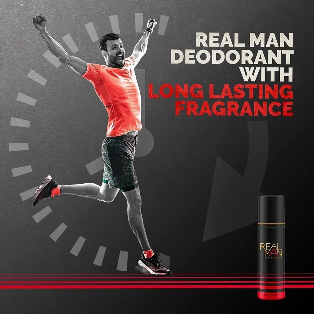 Real Man Fresh Mood Body Spray that ensures body odour stays miles away from you, keep you delightfully fresh and feeling confident from the first spray. It has an unmistakably masculine fragrance that stays on you long after the first spray. It’s not only long-lasting but also has a distinctive fresh scent that’ll leave a lasting impression on anyone you meet. Put it all together and you get a body spray that’s your perfect partner to eliminate sweat and body odour. It comes in 150 ml bottle.