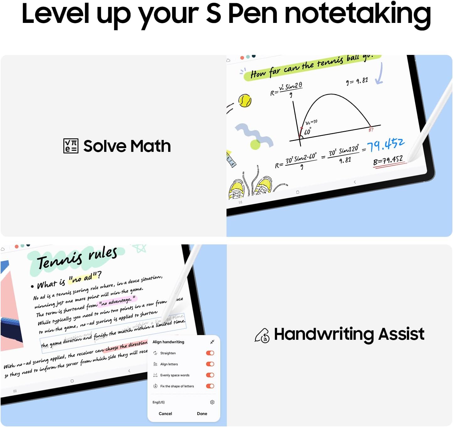 Math Solver: Use your S Pen to write out an equation on your screen. Math solver can clean up your equations by turning them into text, just like that. Plus, it can even solve them for you, including algebra equations